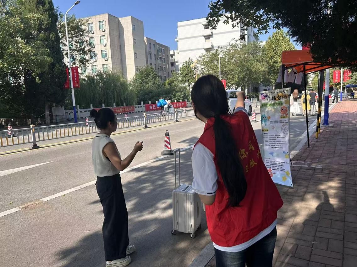 的师生们提前筹备、主动担当,在校门口、报到点、宿舍楼下筑起一道道温暖防线,用热情与责任为新生保驾护航。