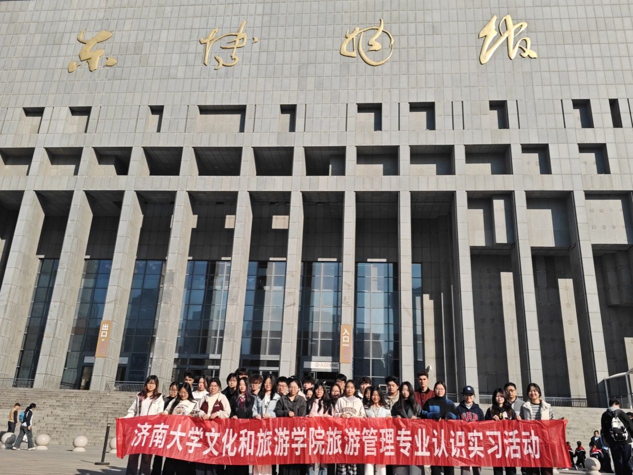 在济南绿地美利亚酒店和鲁能希尔顿酒店,学生通过实地参观、交流座谈与现场模拟等途径,学习了酒店的开元娱乐、服务设施配置、各岗位的工作内容及服务要点等。在山东博物馆,学生现场分组模拟导游讲解,领略了山东的历史文化和地域特色,对文创商品设计与开发、业态布局及展品数字化展示进行了全面了解。在大明湖景区,学生对景区旅游资源的分布、功能分区与商业设施进行了深入考察,并分组开展了关于大明湖景区新业态与旅游新市场的问卷调研工作。