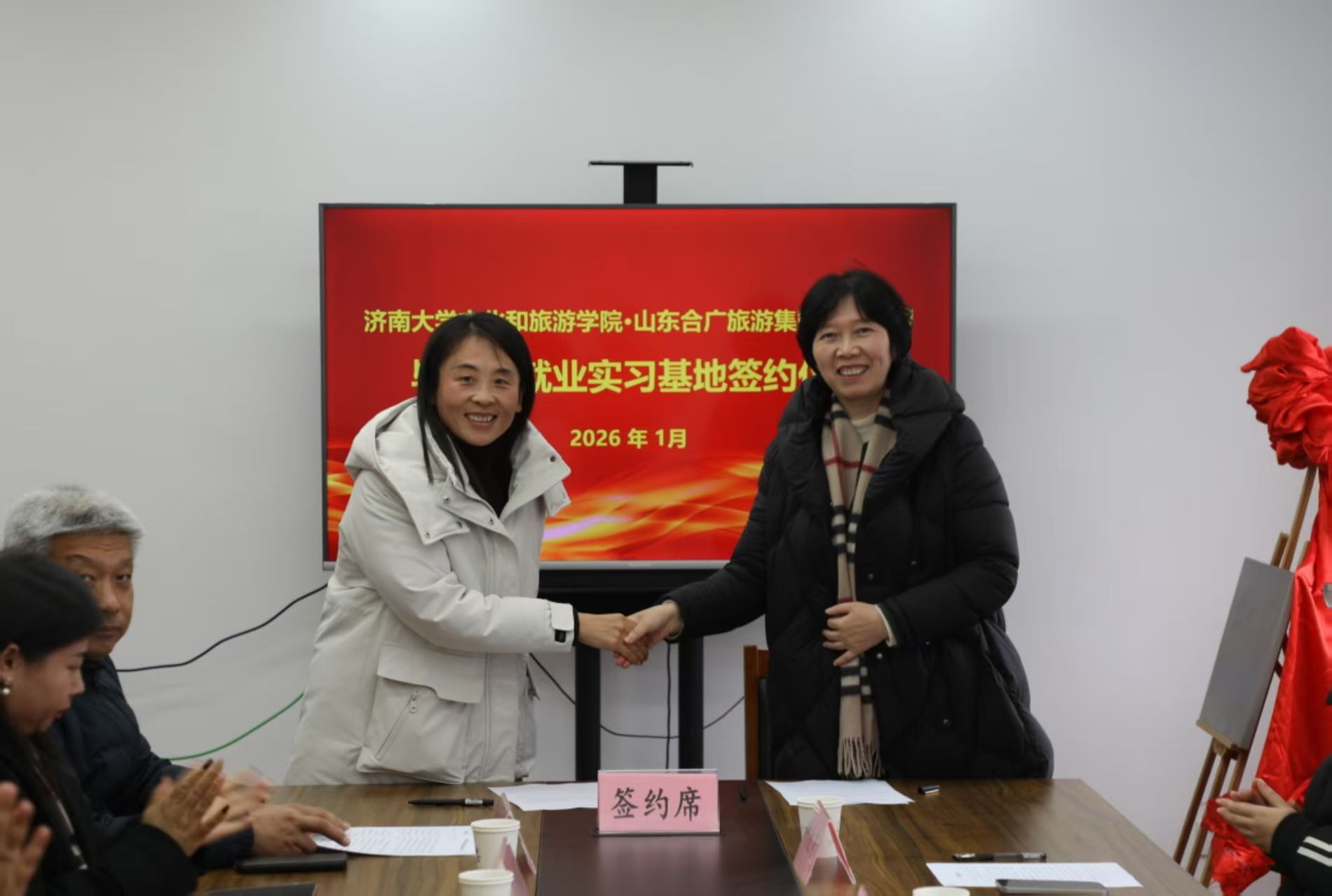 发展,今天见到老师们格外亲切。费县文旅行业发展空间很大,期待更多学弟学妹来这里实习就业,我们一起为家乡文旅事业贡献力量。”