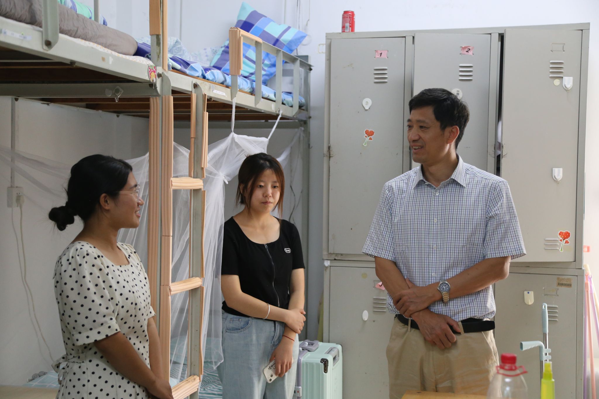 党委书记孟德洋、副书记信苏珊和学办老师们等走访了2023级新生公寓,为同学们送去真挚的关心与问候。