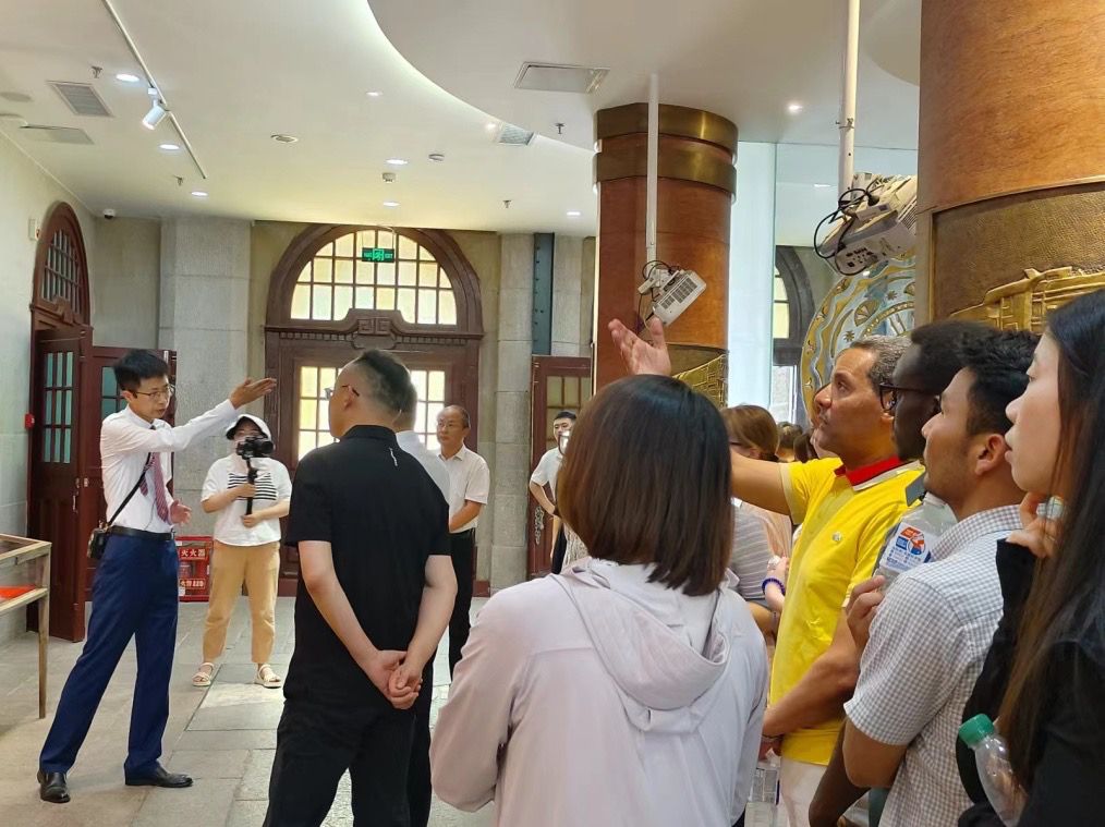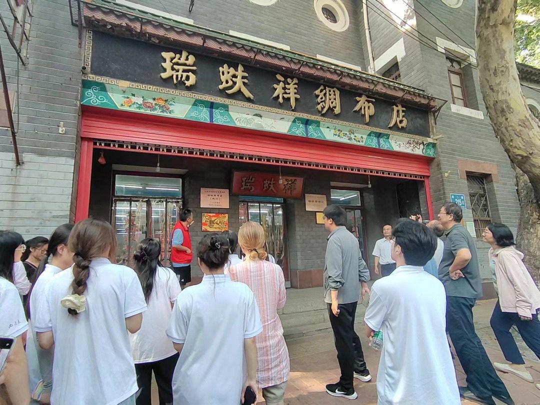 随后,参访团一行来到位于市中区经二路215号的瑞蚨祥绸布店。这家有着悠久历史的绸布店,不仅展示了传统的纺织技艺和绸布文化,还见证了济南商业的繁荣与发展。师生们在此感受到了传统商业文化的独特魅力,并对济南的商业历史有了更加直观的认识。
