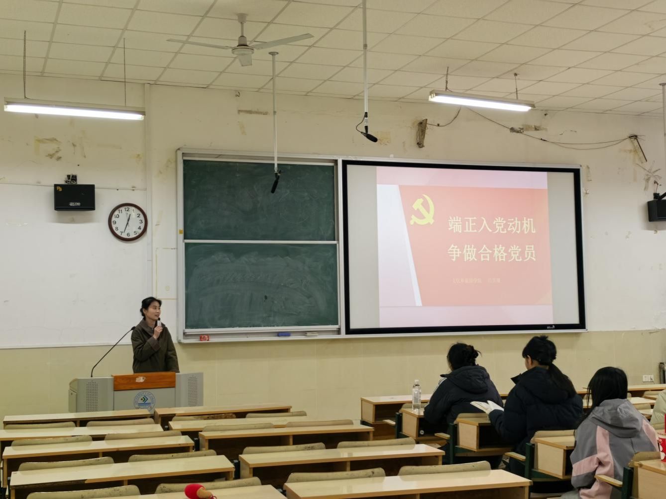 阶梯教室举办入党积极分子理论培训班,共33名入党积极分子参加培训。