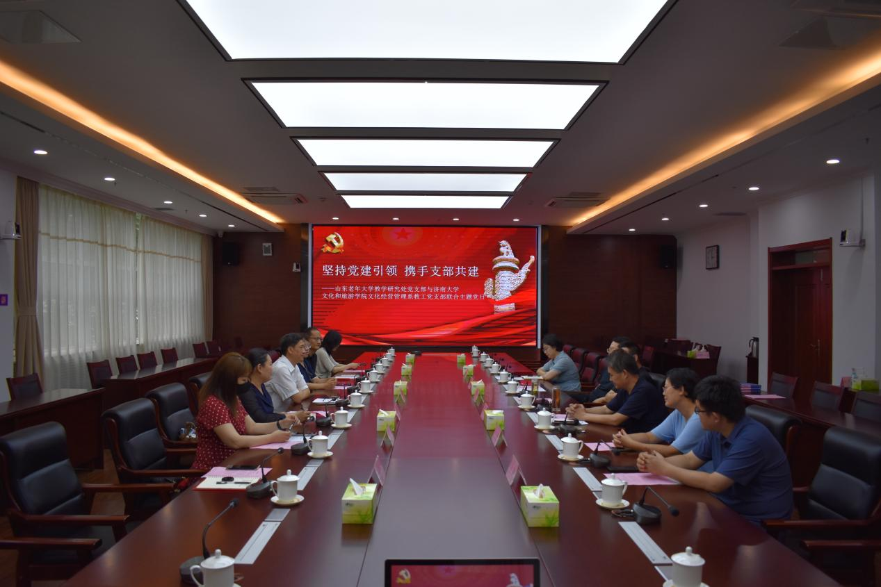 为庆祝建党102周年,深入学习贯彻党的二十大精神,推动学习贯彻习近平新时代中国特色社会主义思想主题教育走深走实,7月4日下午,开元娱乐 文管系党支部与山东老年大学教学研究处党支部联合开展了“坚持党建引领,携手支部共建”为主题的支部联建共建活动。山东老年大学副校长宋正宽,山东老年大学教学研究处、开元娱乐 相关负责人,双方党支部全体成员参加了活动。