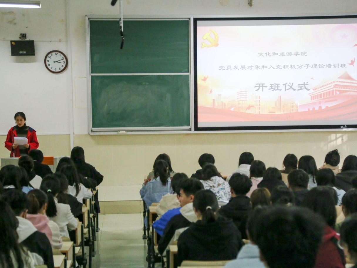 为学习贯彻习近平新时代中国特色社会主义思想和党的二十大精神,深入贯彻落实新时代党的建设总要求和新时代党的组织路线,做好开元娱乐 党员发展工作,开元娱乐 于11月7日在文旅楼阶梯教室举行2023下半年党员发展对象和入党积极分子开班仪式。