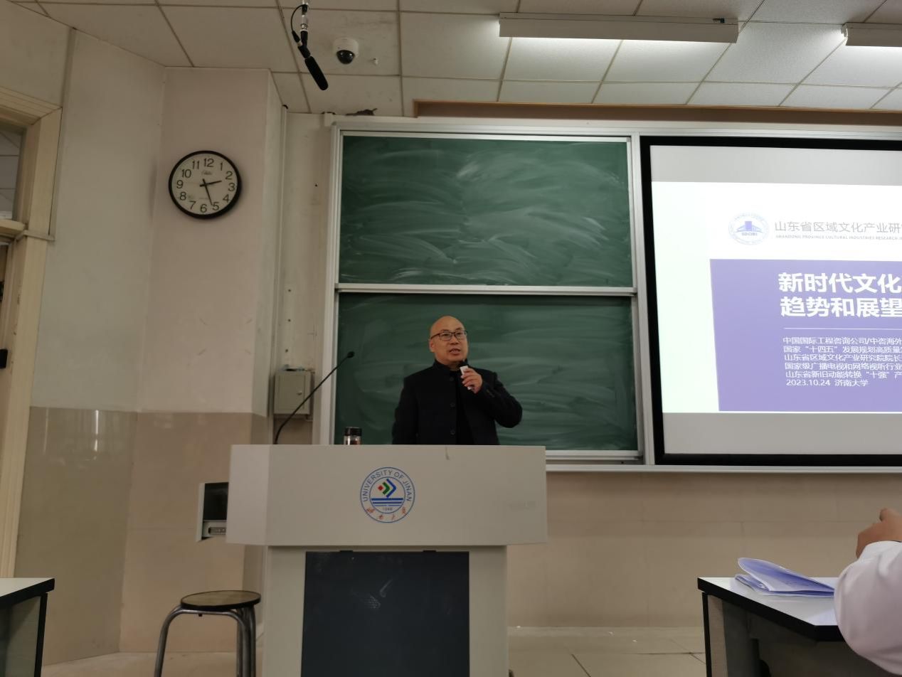 邀请孙吉国研究员进行了《新时代我国文化产业实现高质量发展的路径选择》的主题报告。报告由副院长马修伦主持,文化经营管理系支部书记赵斐、主任宁秀丽、教师代表、文管系学生参加了活动。