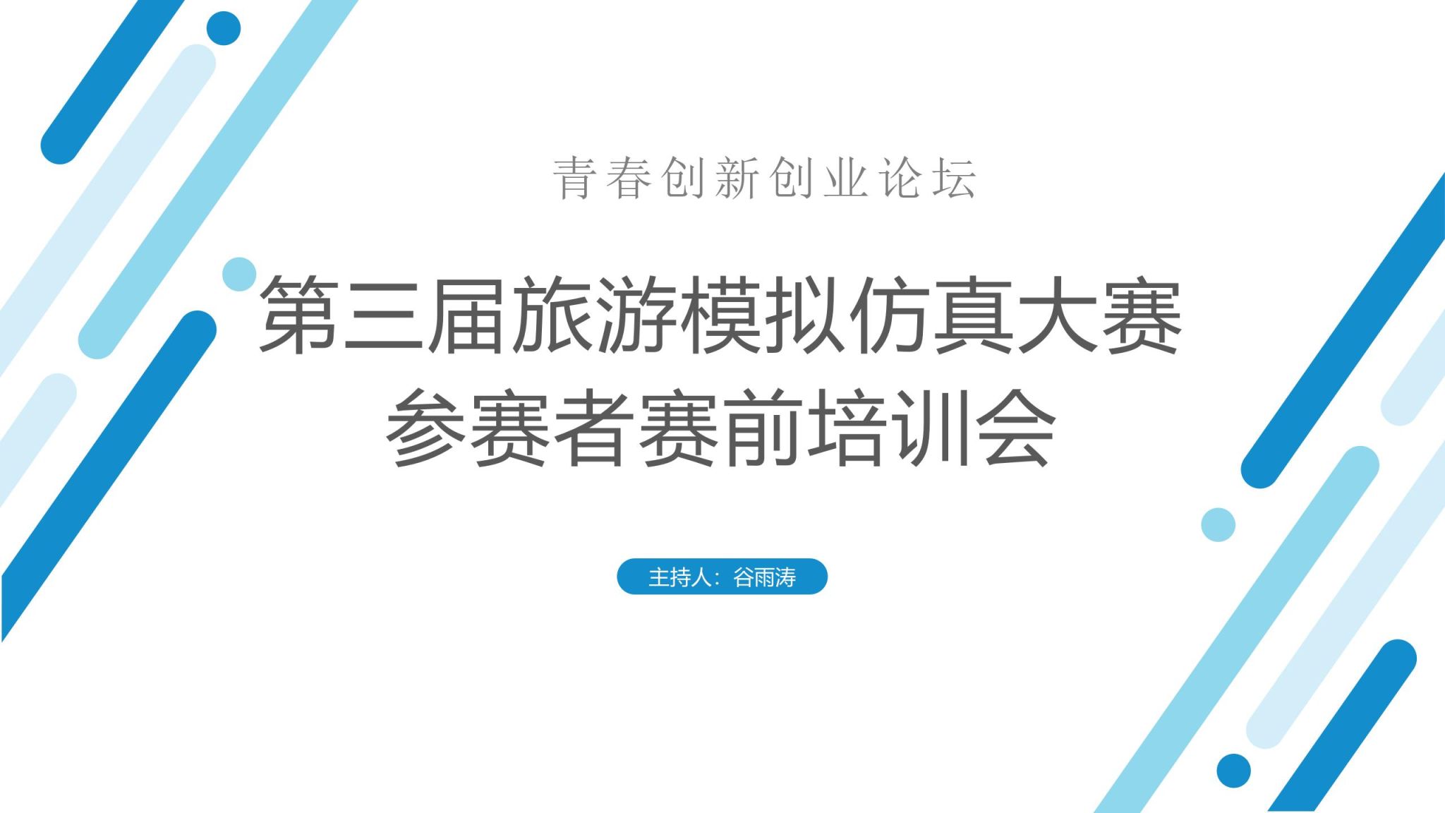 2024年5月27日,开元娱乐 举办青春创新创业论坛——第三届旅游模拟仿真大赛参赛者赛前培训会。该活动于19:00在D3J201举行,主持人为创新创业部谷雨涛同学。