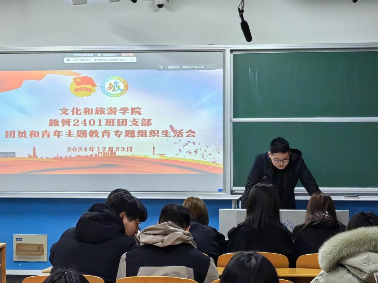 团委书记吕龙飞老师、旅管2401团支部16名团员及2名优秀青年代表参加会议。