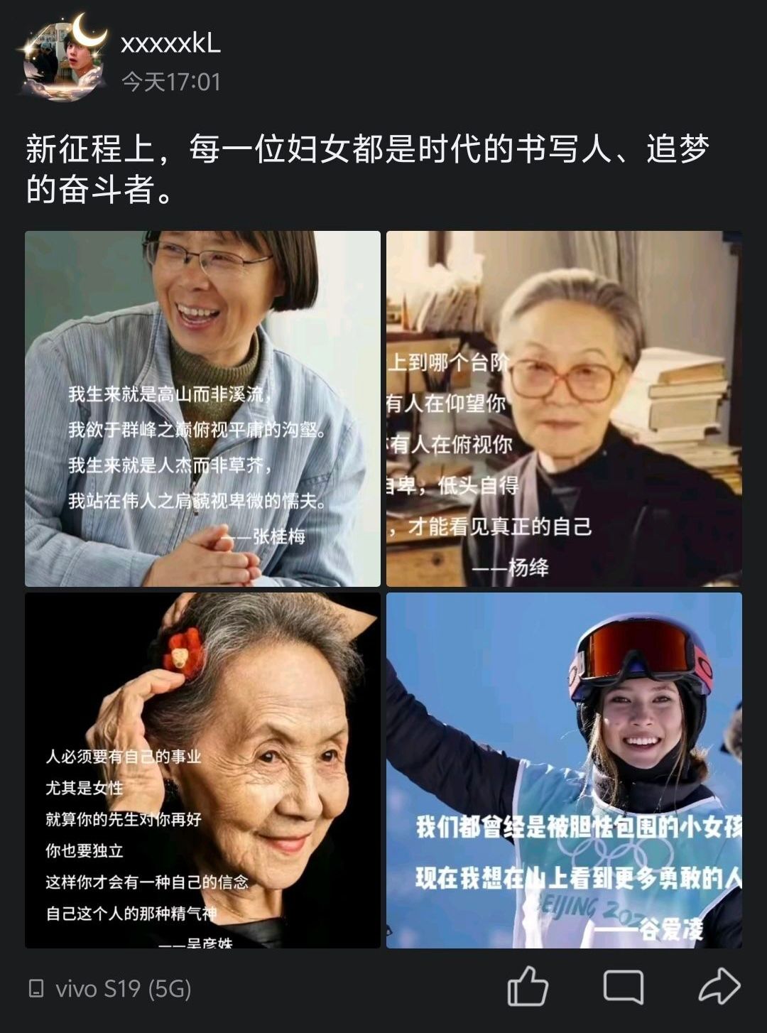 此次活动充分利用社交媒体互动性强、传播范围广的特点,鼓励全体学生在朋友圈、QQ空间、微博、短视频平台等渠道,发布鼓舞、赞誉女性的原创图文。同学们积极响应,深挖女性在历史演进、社会进步、科技创新等不同领域的卓越成就,从古代的巾帼英雄到当今的科研先锋,用青年特有的视角与表达方式,展现“她力量”的熠熠光辉。