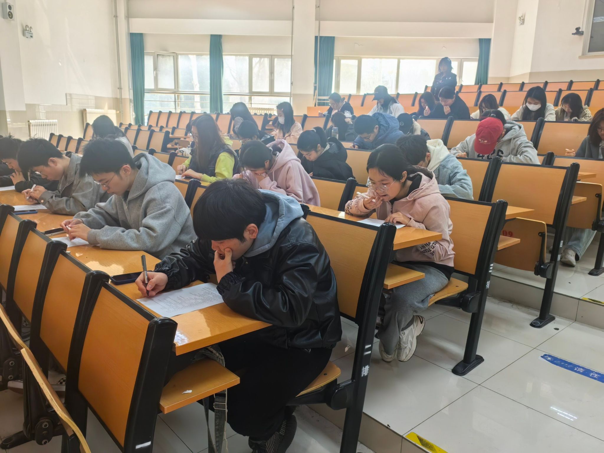 比赛过程中,同学们全神贯注,目光紧紧锁定在题目上,时而低头沉思,时而奋笔疾书。面对一道道涉及消费常识、维权途径、法律法规等方面的题目,他们毫不退缩,凭借扎实的知识储备和冷静的思考分析,迅速做出回答。