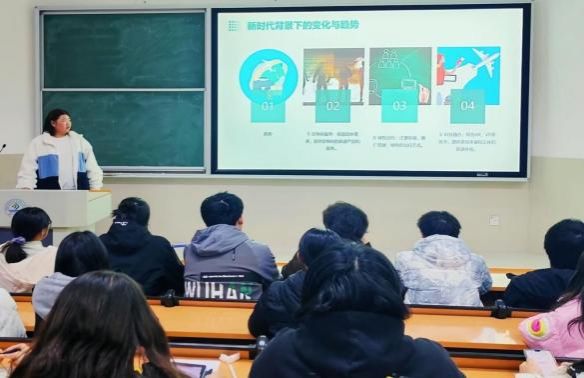 举办专题辅导会。由曾经的优秀参赛团队代表分享参赛经验与获奖心得,从“政策导向、市场需求、文化内涵”三大维度入手,深入剖析赛事评审标准与创意实现路径。围绕实际作品实例,详细解析了从用户痛点识别到商业模式搭建的完整流程,并重点讲授如何利用市场调研数据支撑策划逻辑,如何将地域文化融入旅游产品设计,使项目既具社会价值,又具市场潜力。现场设置的“十分钟极速策划”环节,让同学们体验从市场调研到方案落地的完整流程。参与的张同学感慨道:“原来一个好项目不仅要有新颖的创意,更要具备落地的逻辑与结构。今天的分享不仅解答了我对比赛的许多疑问,也让我深刻体会到文化与商业的结合如何产生真正的‘化学反应’。”