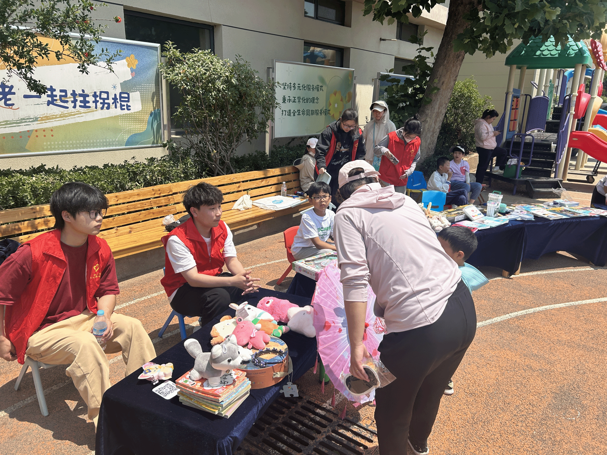 的志愿者们无疑是最温暖的底色。他们化身贴心陪伴者、耐心引导者,活跃在各个角落。在以物会友专区,志愿者们轻声细语,帮孩子们挑选商品,分享背后故事;DIY工坊区中,他们手把手教学,鼓励孩子大胆创新;互动游戏区里,志愿者们与孩子们并肩作战,尽情享受欢乐时光。他们用真诚与热情,将爱传递给每一个孩子,让孩子们在活动中感受到尊重与关怀。