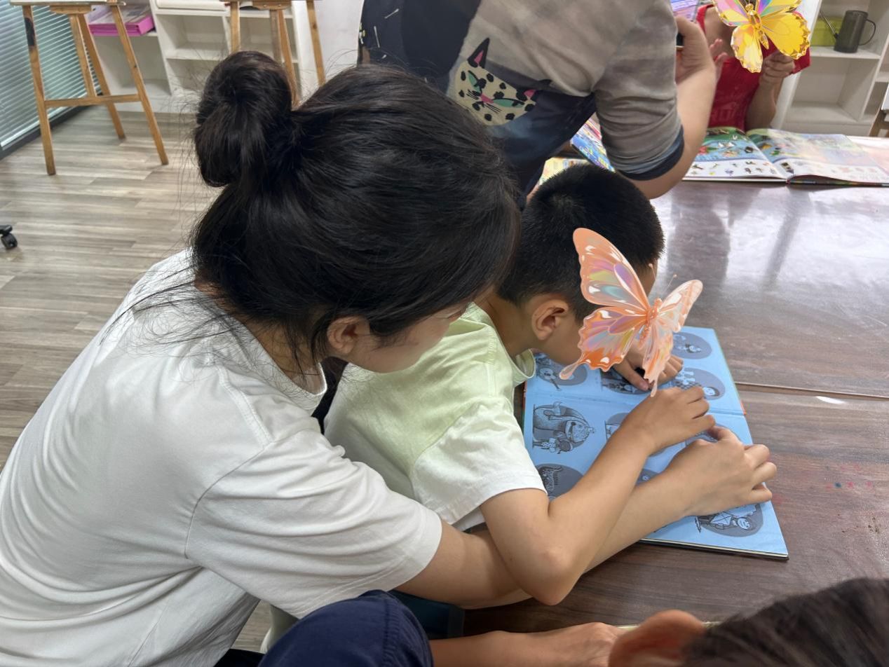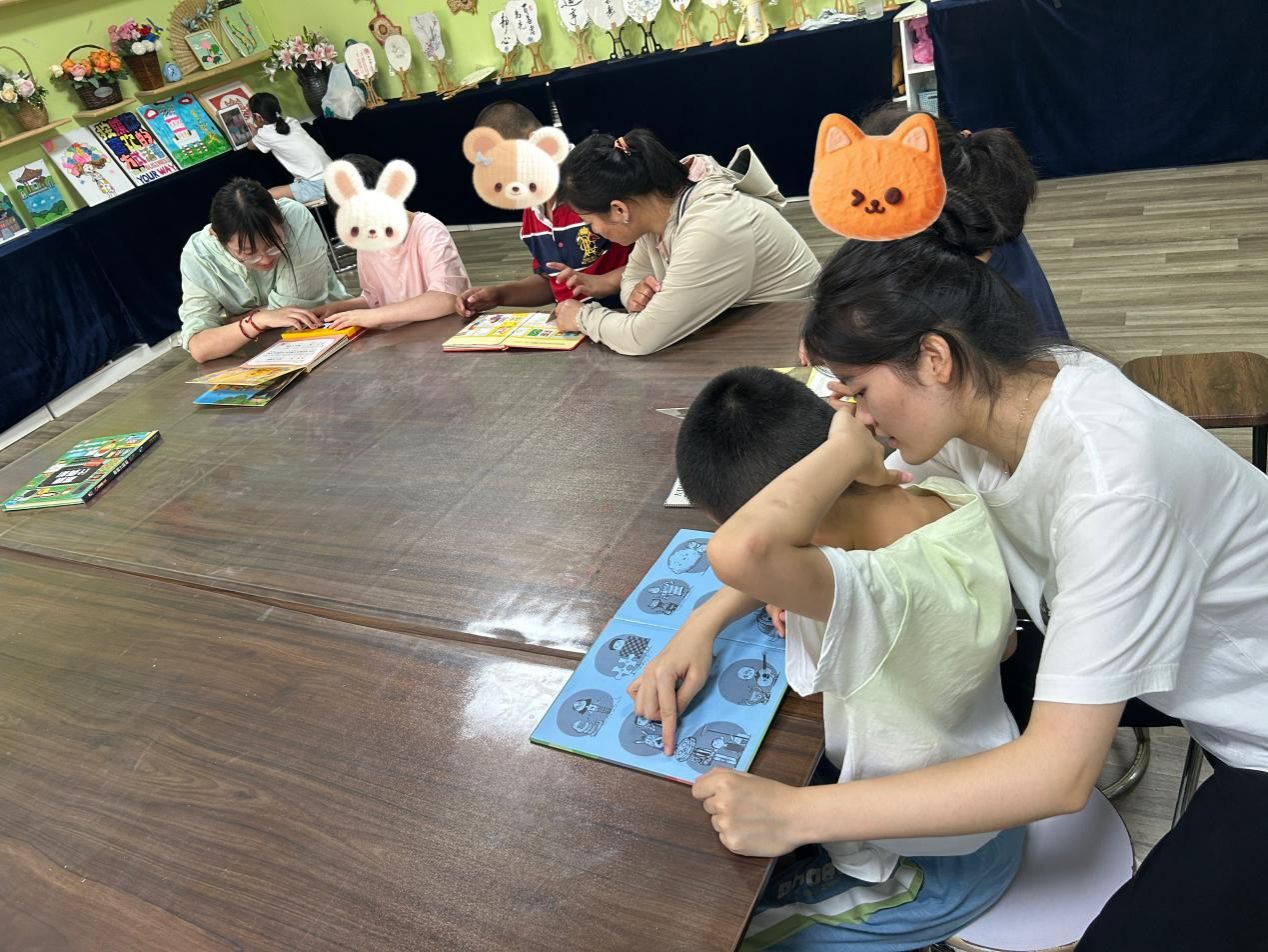 图书角里,一场融合多元感知的读书陪伴正在进行。团队成员拿起特制绘本,引导孩子们触摸立体模型认知事物,轻按书页上的钢琴键感受音乐韵律。有的孩子指着立体动物模型轻声跟读,有的跟着钢琴键发出的旋律轻轻拍手,每一个细微的反应都让团队成员们欣喜不已。这段书香与音符交织的时光,为孩子们打开了一扇认知世界的小窗,也让知识的种子在陪伴中悄悄萌芽。