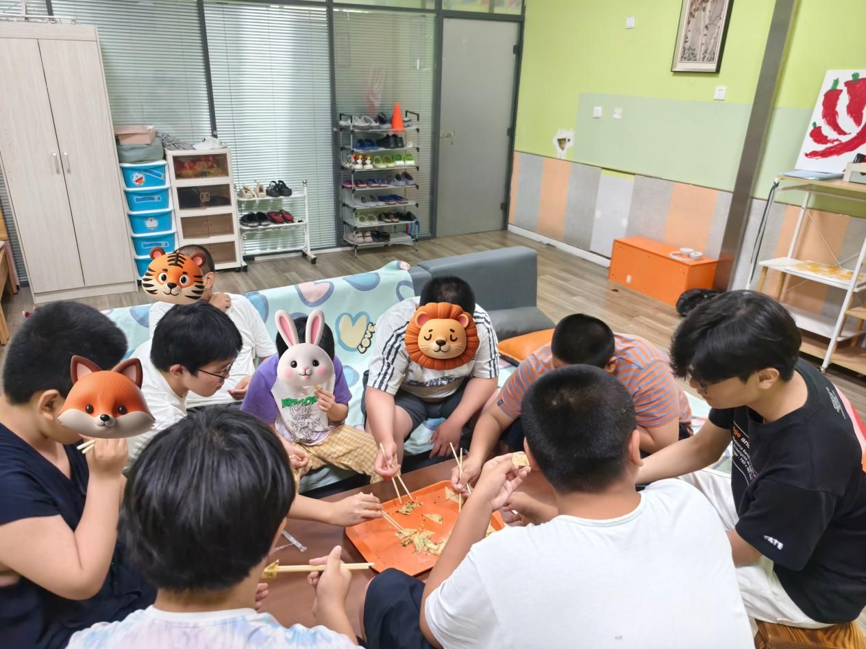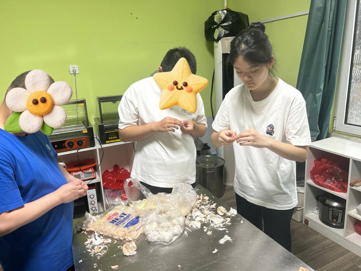 生活课上,“制作葱花饼”成了最受欢迎的环节。团队成员张保阔、胡展豪提前准备好面粉、葱花等食材,从和面、擀皮到撒料、烙制,一步步耐心教学。孩子们围在桌旁,有的帮忙撒葱花,有的好奇地看着饼在锅中慢慢鼓起、变金黄。当香气四溢的葱花饼出锅,大家围坐在一起品尝共同的劳动成果,简单的美味里藏着满满的幸福。这不仅是一堂生动的生活技能课,更让孩子们在分享中体会到“付出”与“收获”的意义,让暖心滋味留在舌尖,更留在心间。