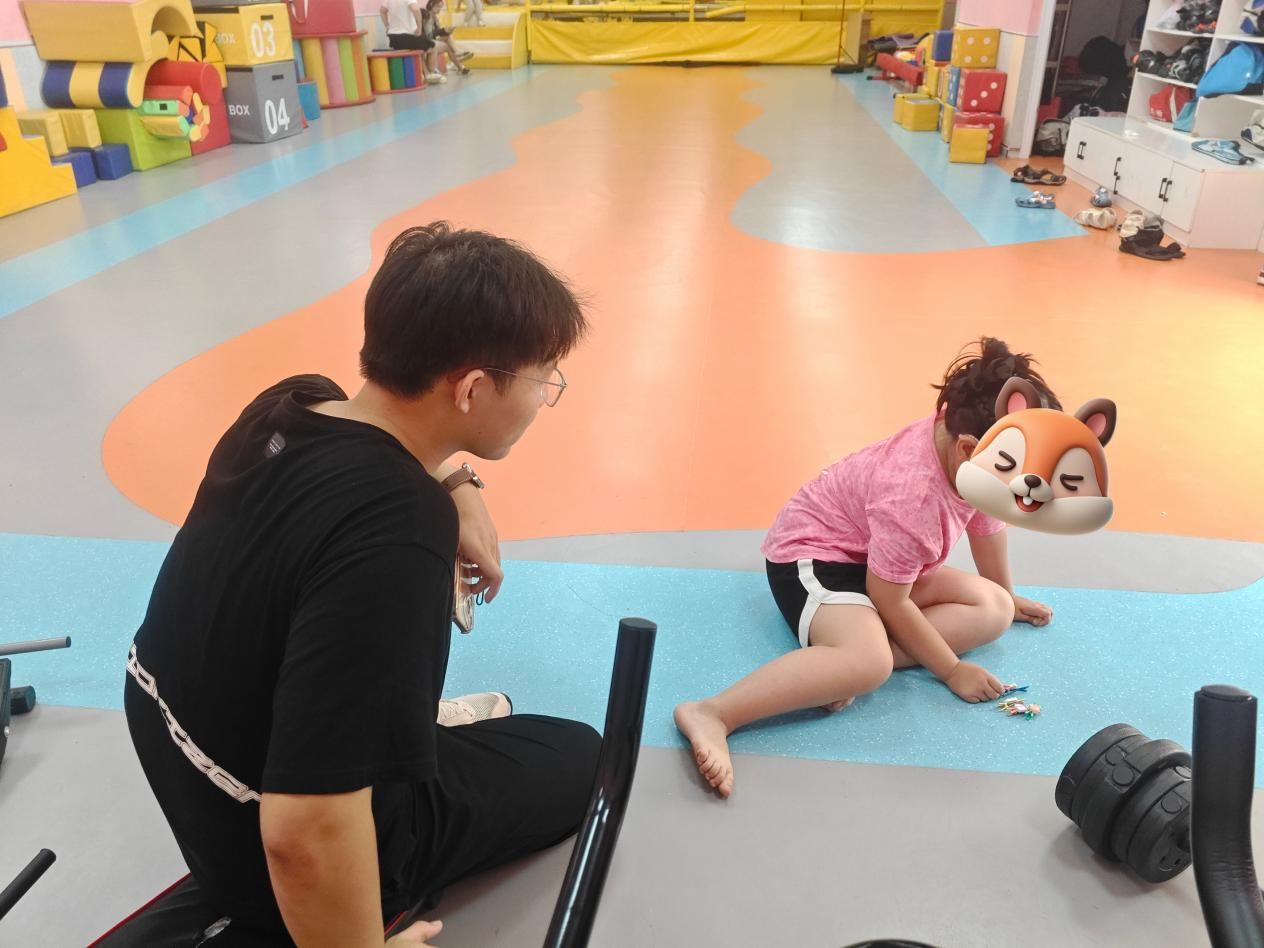 康复中心的课堂上,团队成员化身为“同行者”,全程参与孩子们的学习时光。认知课上,队员程明菲与孩子并排而坐,跟随老师的引导共同感知身体的存在;讨论环节,队员李雨薇耐心倾听孩子的想法,用鼓励的话语引导思考;观看动画片时,队员黄艺琛和孩子一起欢笑,适时讲解画面里的故事。当孩子因为难题皱眉时,队员轻轻点拨思路;当孩子主动分享见解时,队员及时送上肯定的掌声。课堂上的并肩同行,不仅为孩子们的学习增添了助力,更让他们在互动中感受到平等与尊重,让成长的每一刻都充满温暖的陪伴。