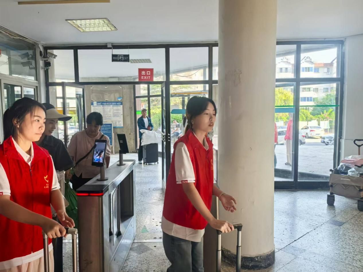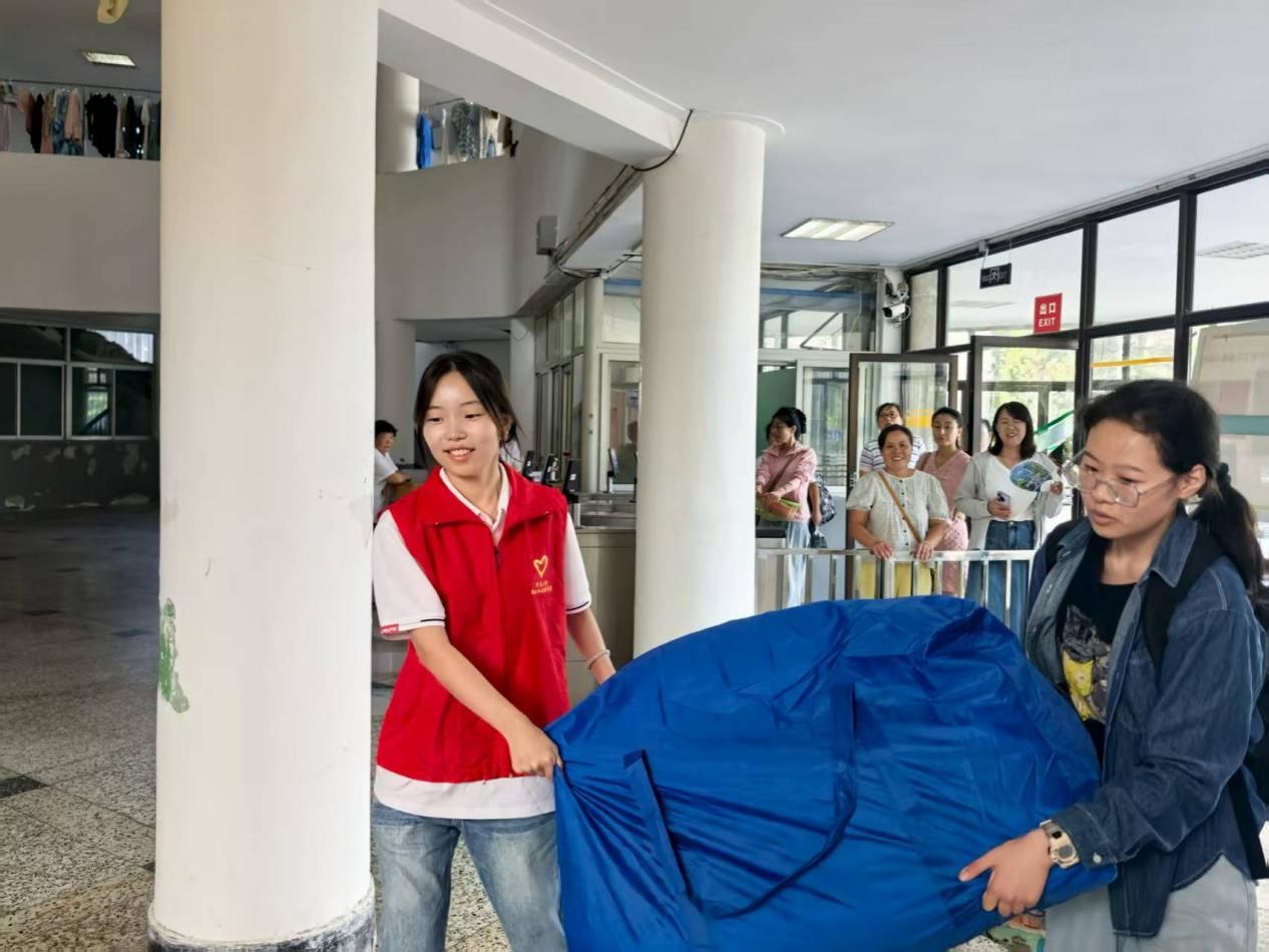 活动当天,志愿者们早早到位,分工有序、积极协作。迎新帐篷前,志愿者们耐心解答疑问,协助新生办理信息登记、材料领取等手续,并细致介绍校园布局、食堂、图书馆等学习生活信息。他们主动上前、伸出援手,帮助搬运大件行李,一路送至宿舍楼下。校门口,志愿者们微笑迎接初来校园的新生与家长,清晰指引报到路线;学生公寓内,同样忙碌不止——讲解设施使用规范,回应各类生活问题,亲切交谈中传递着济大校园的友好与温暖。