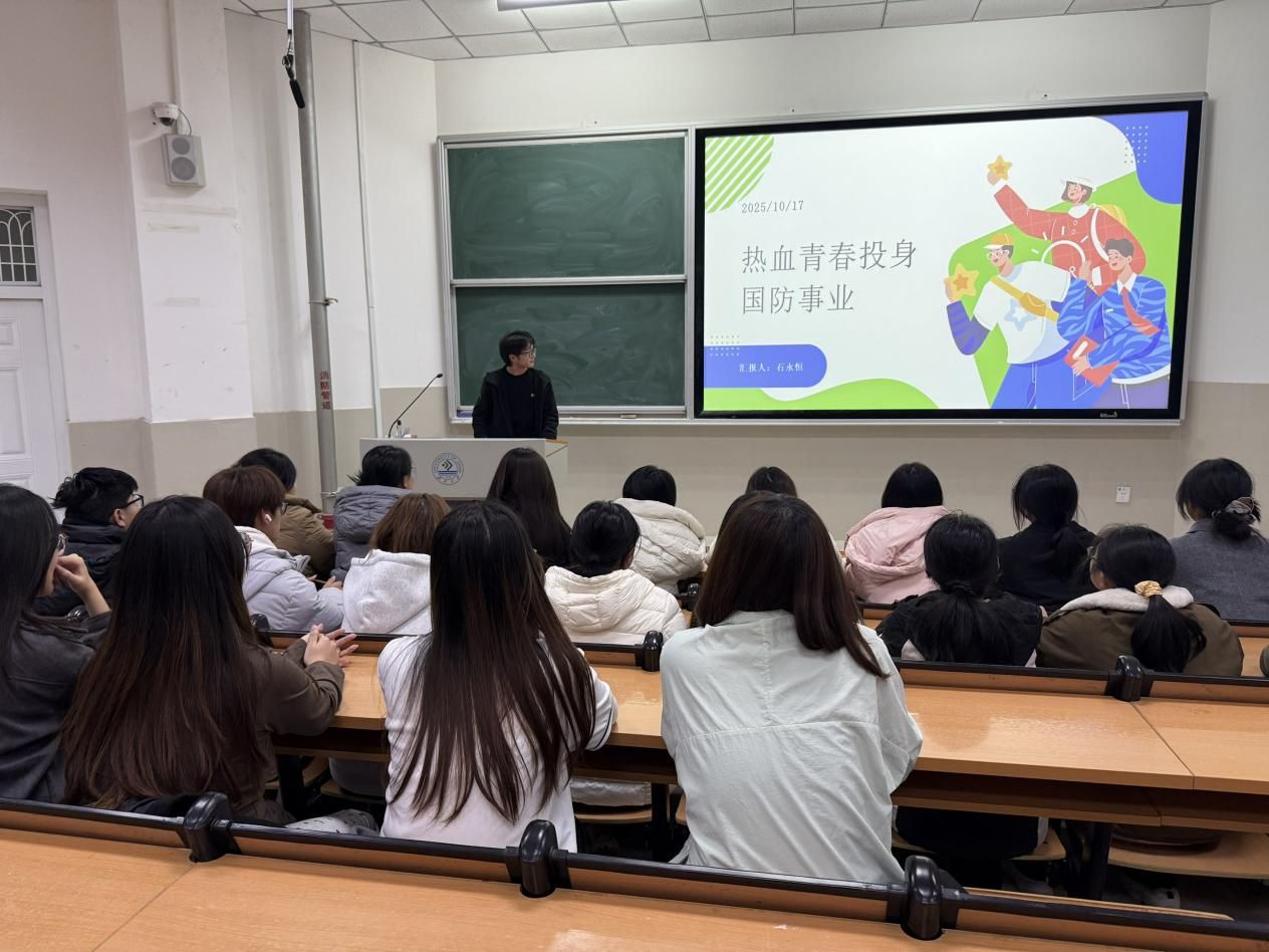 随后,石永恒详细解读了大学生入伍的报名条件、优待措施、学业保障、退役安置以及职业发展路径,并针对同学们普遍关心的学籍保留、考研加分、经济补助等问题进行了耐心细致的解答。在交流互动环节,同学们围绕入伍流程、军兵种选择、未来发展等议题踊跃提问,现场气氛热烈。石永恒依据政策规定,逐一解答了同学们的疑惑,并鼓励大家响应国家号召,将个人理想融入强军梦、强国梦。