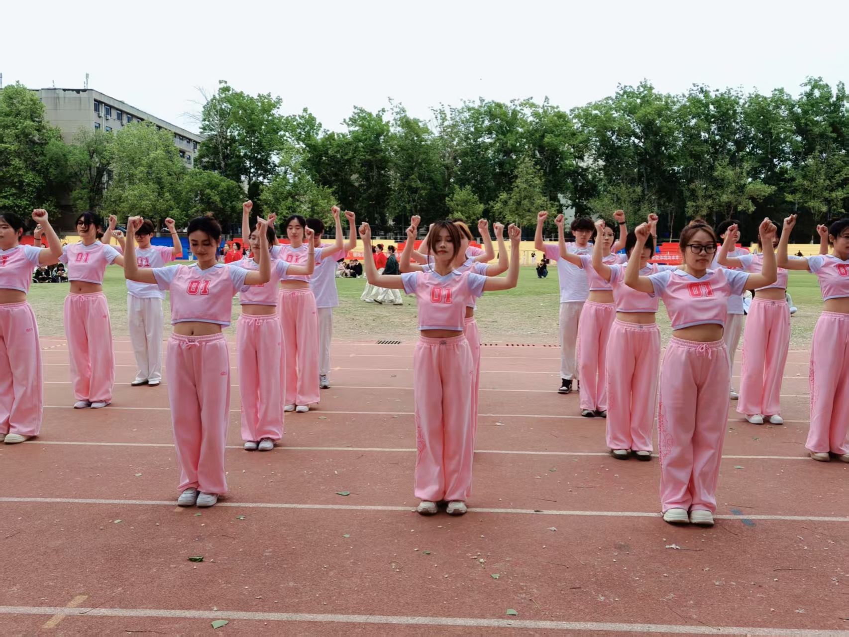 备赛期间,队员们虽然面临着课业与训练的双重压力,但他们的热情丝毫未减。每天课后和周末,田径场、舞蹈教室便成了他们的“训练场”。练中华健脊操时,大家对着教学视频仔细抠动作细节,从站姿、抬手的角度到转身的幅度,反复打磨,力求每个动作都精准到位;练健美操时,音乐节奏快,动作需要爆发力,队员们跟着节拍不断起跳、落地,即便膝盖磕红、肌肉酸痛,也只是简单处理后便继续投入训练。