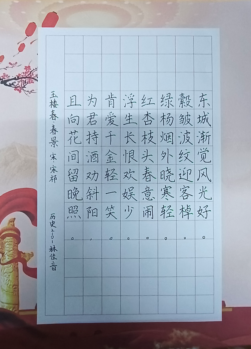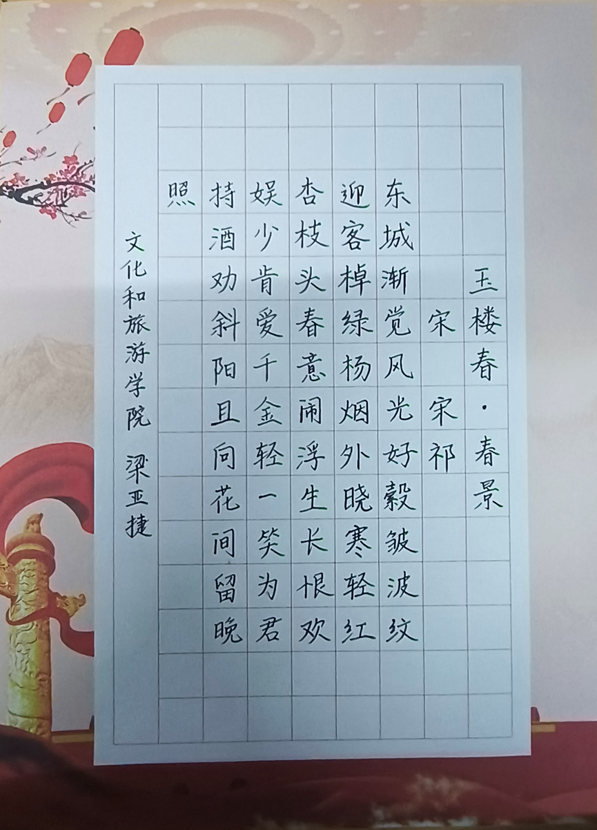 此次比赛让同学们体会了书法之美,培养了同学们的审美情趣,让同学们更加重视提高自己的书写能力。