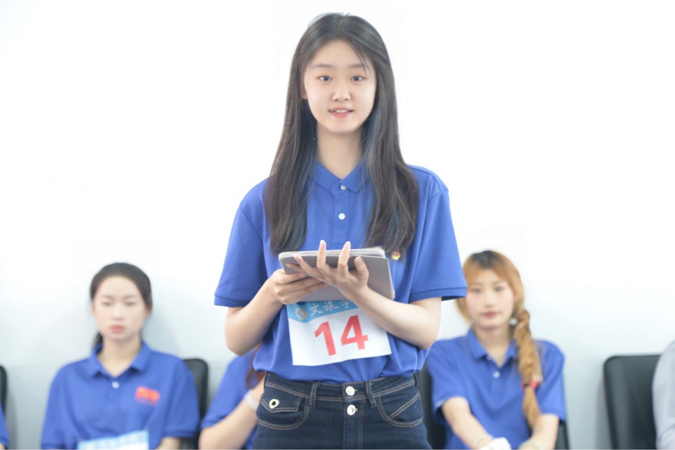 其中本次现场竞选分为候选人演讲和无领导小组面试两个环节。在演讲过程中,各位候选人言辞流利,讲述自己在学生会一年的锻炼学习中的收获和对未来工作的展望,并在无领导小组面试中,积极提出自己的看法和小组成员从问题的不同角度出发进行讨论。在此之间,评委们根据现场表现进行评价打分。