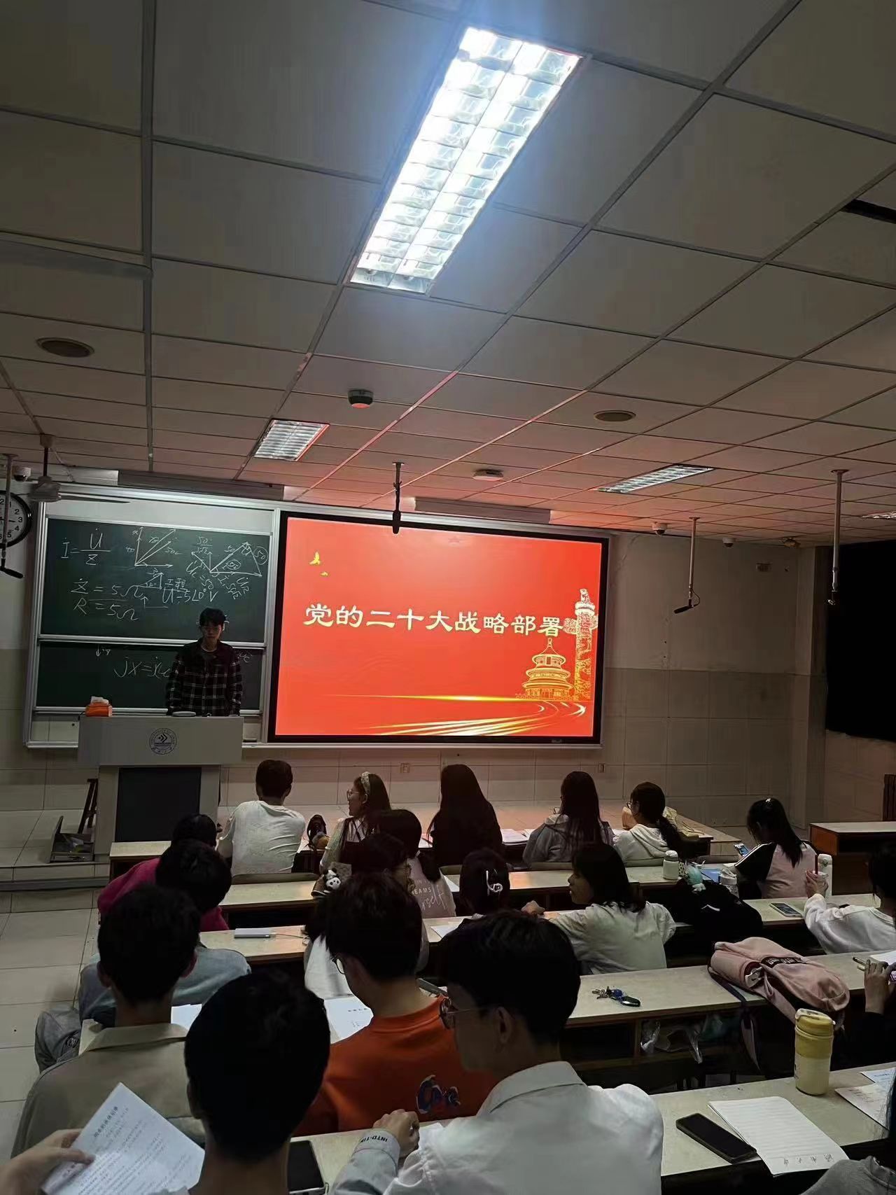 红旗飘飘,党旗猎猎,回首百年,我们经历太多的磨难,向前进的每一步都是不易。新征程已经开启,全面建成社会主义现代化强国、全面推进中华民族伟大复兴,是全党全国人民的中心任务。为引领广大青年在强国建设、民族复兴伟业中挺膺担当,深刻领悟团结拼搏、无私奉献的革命精神,故开展“学习二十大,永远跟党走,奋进新征程”团日活动。本次活动紧扣时代脉搏,以班级团支部为单位,以跟党走奋进拼搏为主线,通过组织团员青年在班级内开展观看党的二十大、团的十九大视频,畅谈自己对未来的理想,学习习近平总书记重要讲话精神并写下自己的心得等系列活动,深入学习领悟团结拼搏、无私奉献的红色精神。各团支书根据院团委要求,结合实际、创新方式方法,通过线下线上相结合的方式开展本次活动。
