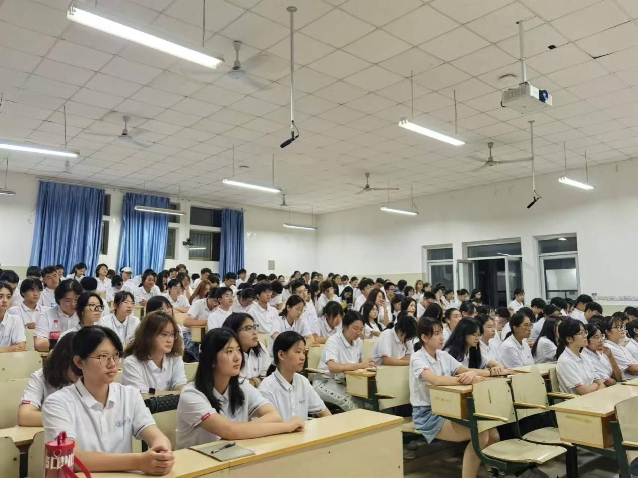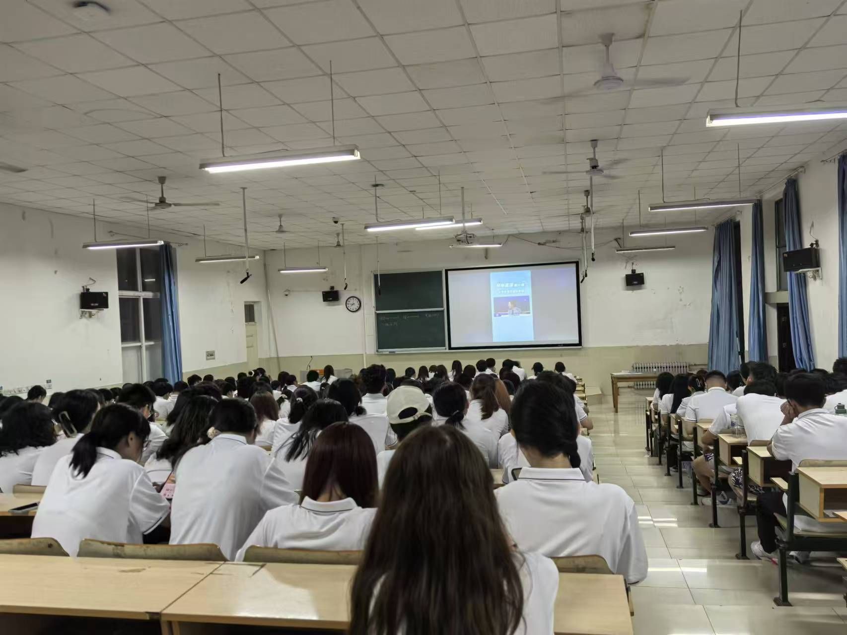 24级新生在舜耕校区阶梯教室共同观看开学反诈第一课。此次直播由北京市公安局朝阳分局民警王佳和国家反诈中心民警武斯清共同主讲,为新生们讲解大学生常见骗局及其应对方法。