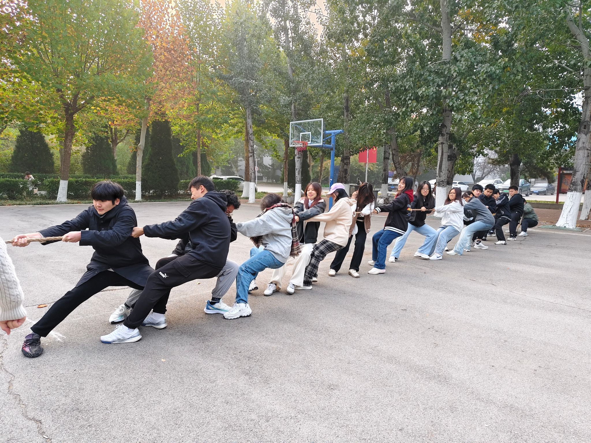在舜耕校区篮球场联合举办“团结一心,绳采飞扬”拔河友谊赛。