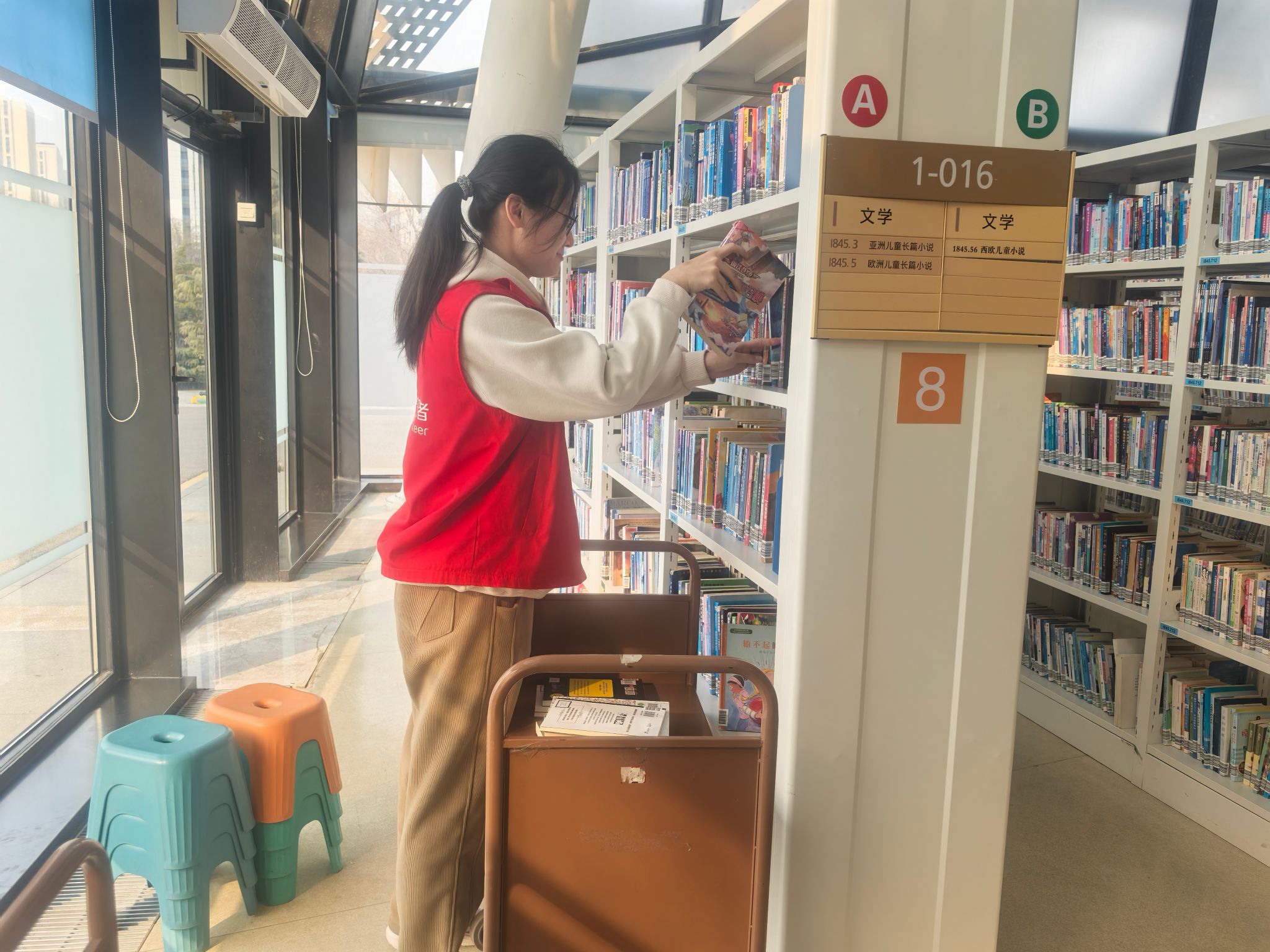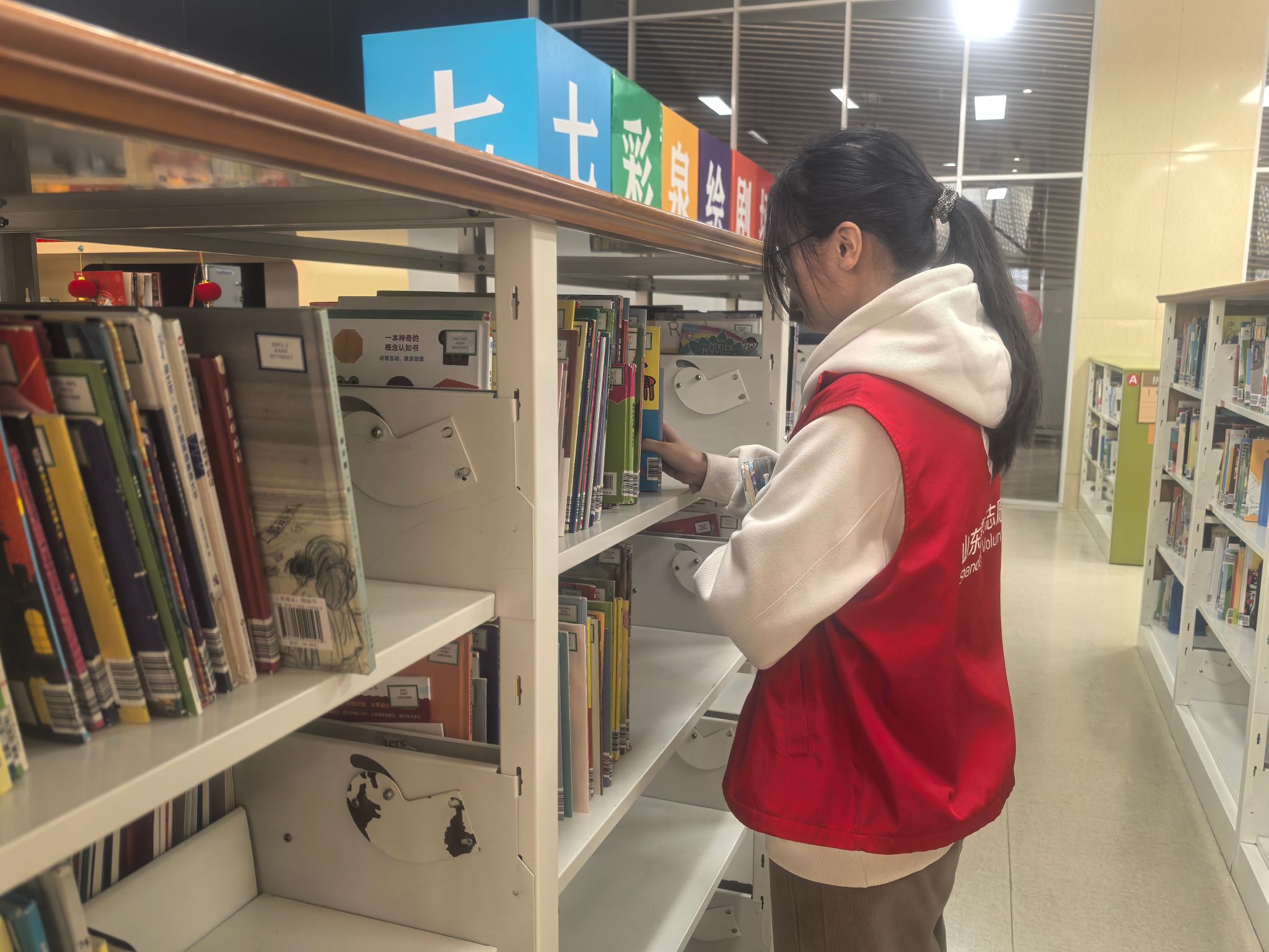 2025年1月21-22日,张睿涵同学在济南图书馆儿童阅览室完成2天高强度服务。面对绘本区、拼音区密集的图书整理需求,她细致分类、耐心引导小读者,并主动协助家长寻书。针对书架过高、书籍错放等问题,她建议优化分类标识、增设读者手册。尽管工作繁重,她仍感慨:“看到孩子们沉浸阅读的笑容,一切付出都值得。志愿服务让我学会用细心与热情传递温暖。”