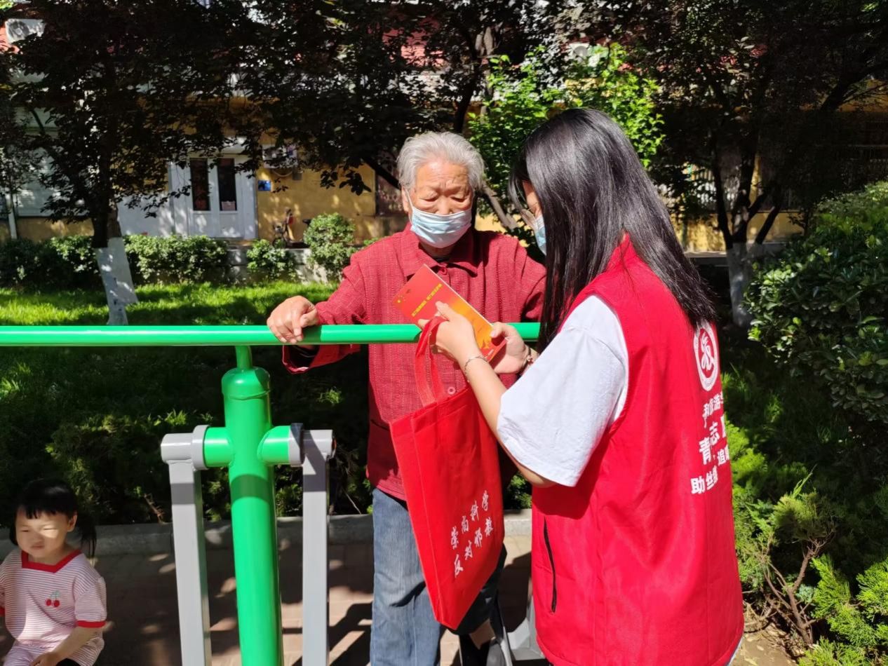 的志愿者们在七里山社区集合,在社区居委会老师的引导下,志愿者们迅速有序地投入到各项服务工作中。首先,志愿者们聚焦于社区老年群体,为老人们开展防诈骗知识宣传。他们耐心地向老人讲述养老诈骗、电信诈骗常见的手段与渠道。用通俗易懂的语言把复杂的诈骗形式拆解开来,帮助老人们提升安全防范意识,增强识别和防范电信网络诈骗的能力。