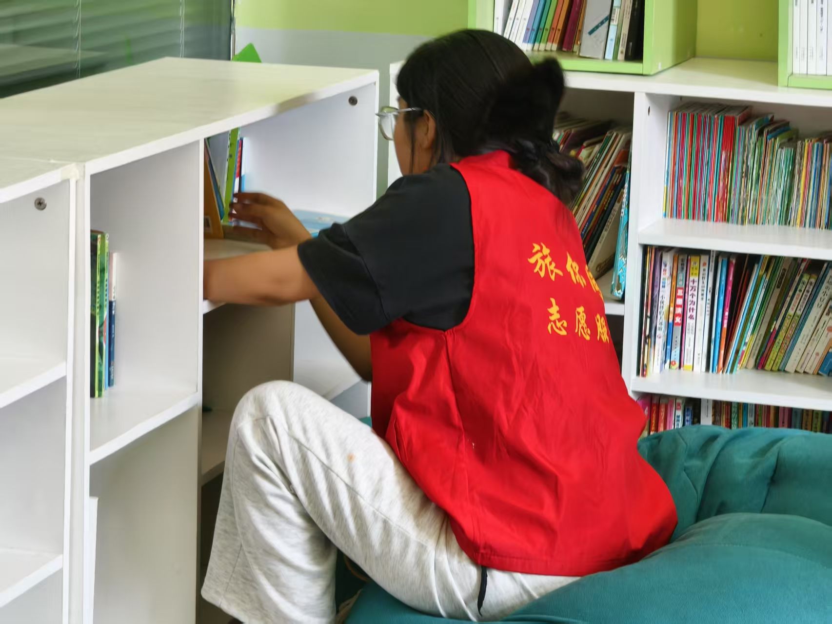 志愿者们投身于书籍整理工作中,宛如在知识的星河中点亮一盏盏明灯。面对杂乱堆放的书籍,他们化身分类能手,将教材、课外读物、杂志等逐一梳理归位。那些因岁月流逝而破损的书籍,在志愿者们的巧手下重焕生机。胶水与胶带化作神奇的画笔,修补的不仅是书页的裂痕,更是守护着每本书籍承载的珍贵记忆。正如志愿者郁菀茹所言:“每一本书都承载着独特的故事,我们整理的不仅是书籍,更是在呵护孩子们心中的温暖回忆。”整理完毕后,整齐排列的书架宛如知识的殿堂,静静等待着孩子们开启探索的旅程。