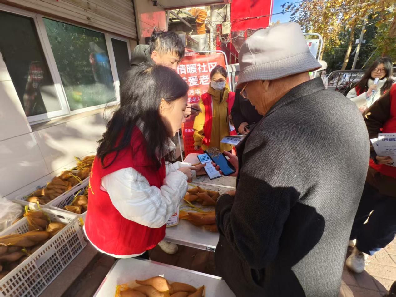 活动现场,社区以优惠价格向居民销售烟台蜜薯,并免费发放现烤蜜薯,吸引众多居民前来参与。志愿者们分工明确、各司其职,有的协助布置摊位、整理物资,有的引导居民有序排队、分发蜜薯,现场秩序井然、暖意融融。