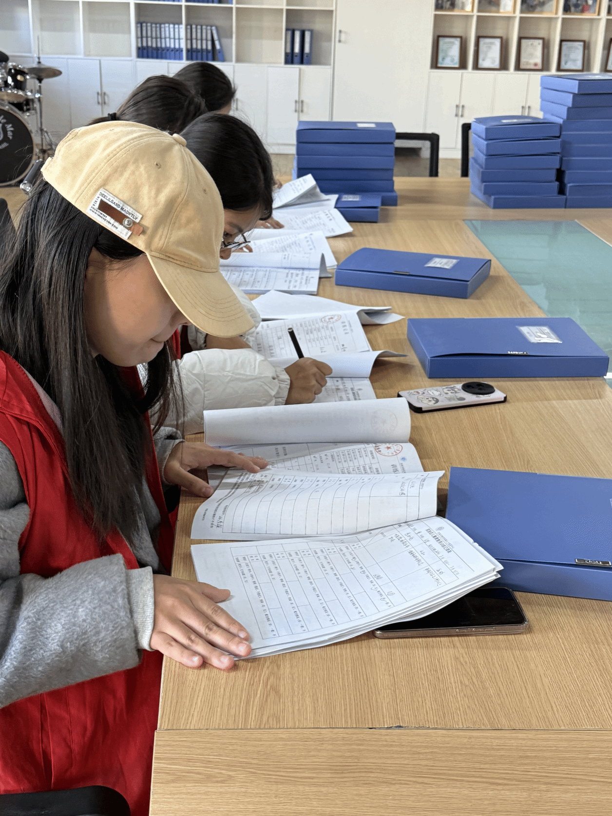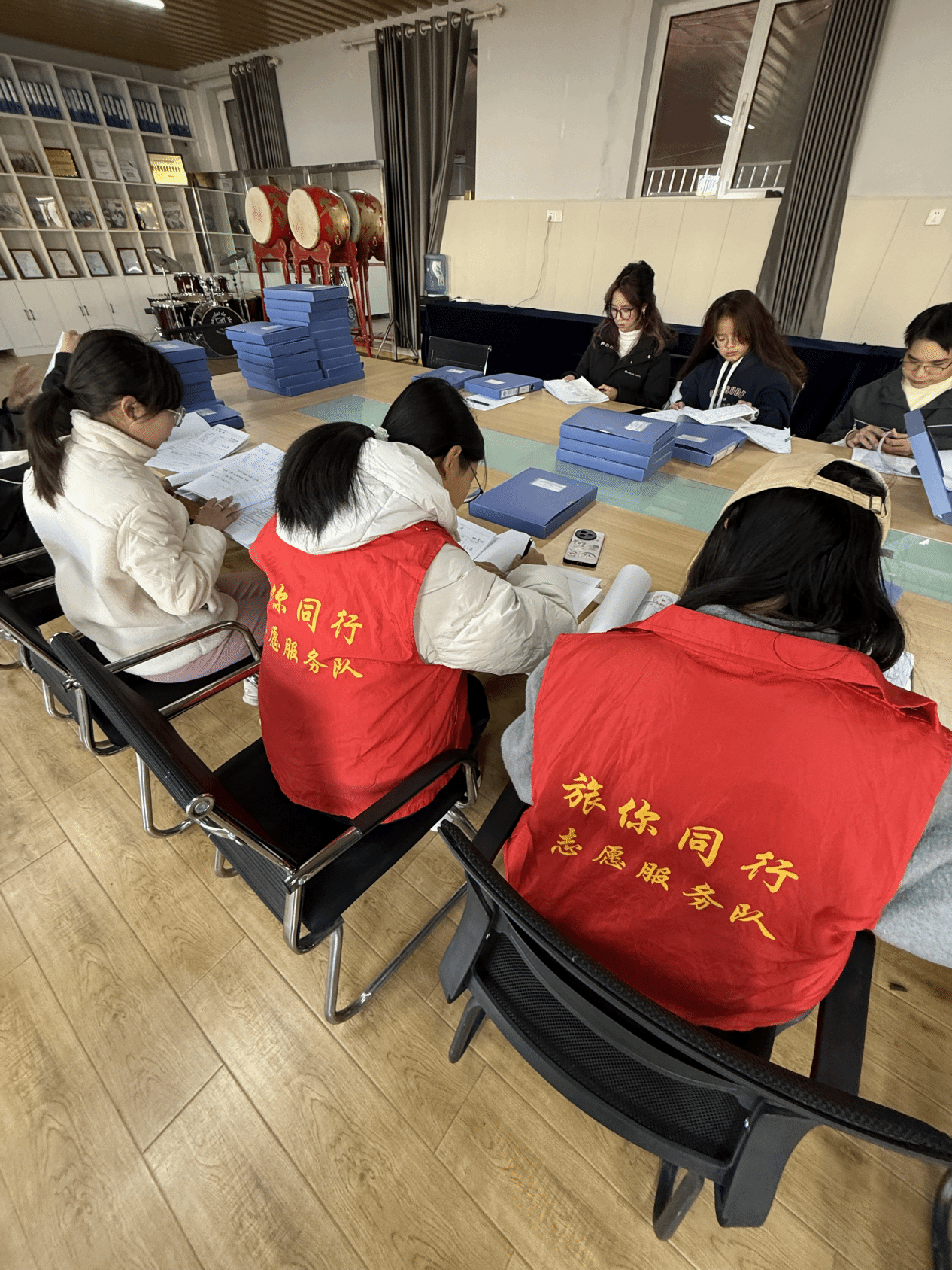 办公室内,一抹抹“志愿红”点缀其间,成为冬日里最治愈的色彩。志愿者们身着红装,凝神专注,将孩子们的康复档案、成长印记逐页梳理、逐字核对,把零散的纸张细细分类,将珍贵的记录缓缓收纳进蓝色档案盒。指尖拂过的,是孩子们一步一个脚印的康复历程;目光驻足的,是孩子们生命向阳而生的倔强力量。每一次归档,都是对责任的践行;每一次核对,都是对童心的珍视。“这些档案里,藏着孩子们成长的密码,我们多一分细心,就能让这份守护更有温度,让老师的照料更有底气。”志愿者林安琪的话语温柔似水,却将责任与热爱,悄悄藏进了这一方方整齐的档案盒里,让每一份记录,都成为守护童心的坚实力量。