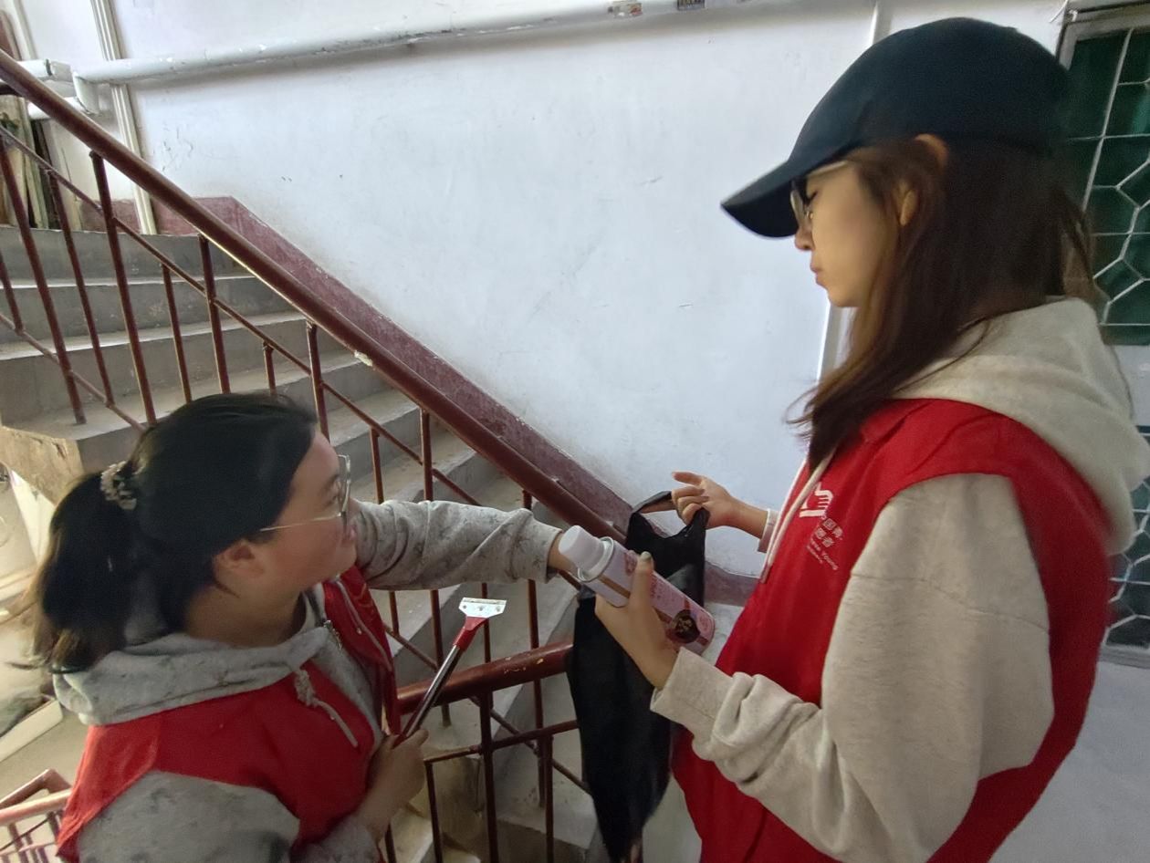 针对社区楼道环境卫生,志愿者们开展深度清扫作业。大家分工协作,全面清理楼道内堆放的杂物、灰尘与污渍,仔细擦拭公共扶手、窗台及墙面,彻底清理楼道内的安全隐患与卫生盲区,有效提升楼道整洁度与通行安全性,守护居民“家门口”的安全与整洁。