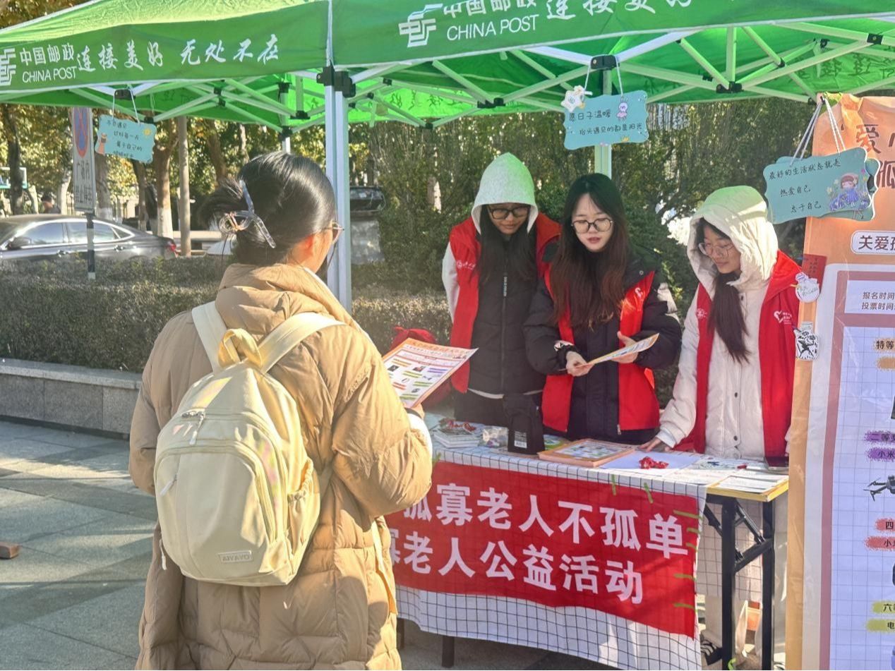 在舜耕校区经管楼前开展“爱心相伴,孤寡老人不孤单”关爱孤寡老人公益活动,为孤寡老人送去关爱与陪伴,让老人们感受到社会的温暖与关怀。