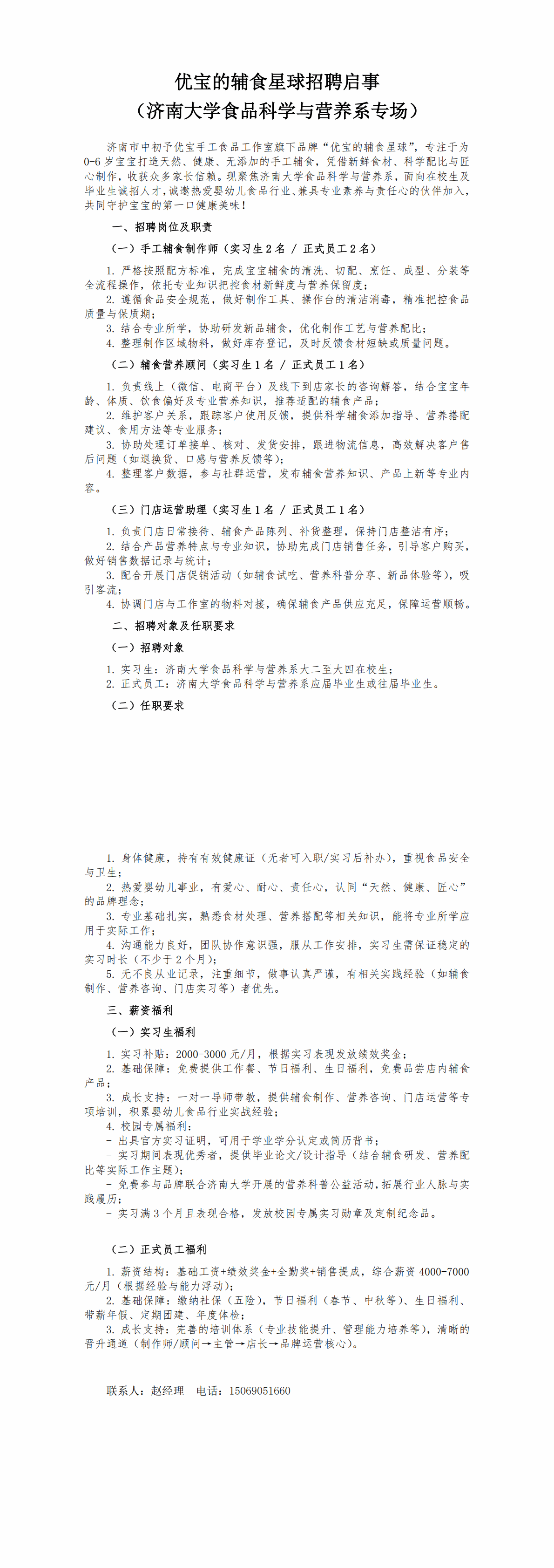 优宝的辅食星球招聘启事 (开元娱乐 食品科学与营养系专场)