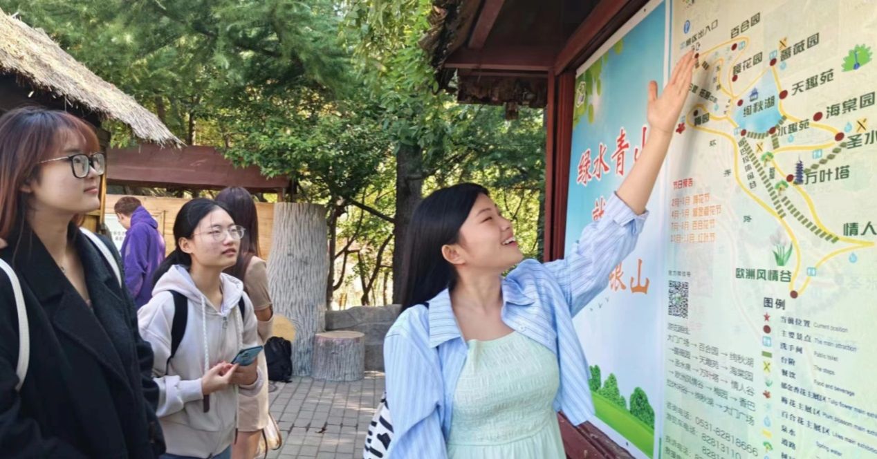在红叶谷生态文化旅游区,学生调研了景区旅游资源的分布、功能分区与线路设计;在山东博物馆,学生现场观摩了专业导游讲解技能,领略了山东的历史文化和地域特色;在芙蓉街-百花洲历史文化街区,学生考察了芙蓉街、王府池子、曲水亭街及百花洲等景点,对文化传承与保护、业态布局及社区旅游发展进行了全面了解;在济南绿地美利亚酒店和鲁能希尔顿酒店,学生通过实地参观、交流座谈与现场模拟等途径,学习了酒店的开元娱乐、服务设施配置、各岗位的工作内容及服务要点等。