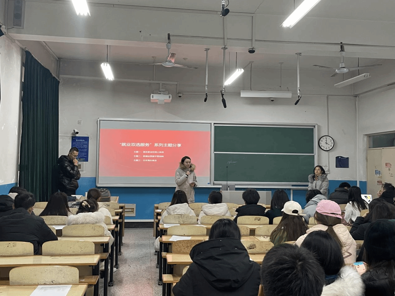 在介绍会的主题项目环节中,企业代表详细介绍了日本海外就业项目、直播运营数字营销师培训项目以及景区职业经理人助理培训等项目。介绍完成后,同学们踊跃发言,积极向企业咨询项目相关问题,同学们了解到了更多的就业选择,以及就业培训方向和途径。