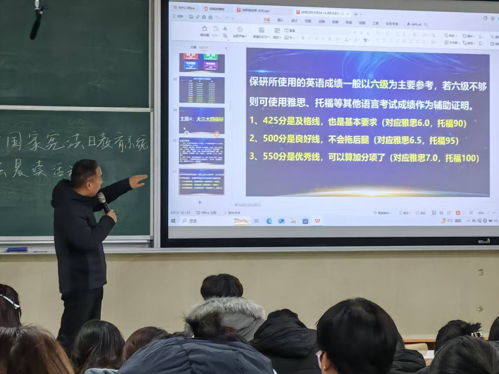 在此次讲座中,全国著名考研指导专家周勇老师作出的演讲内容主要是从他自身的实践经验出发,详细的分析了经济类、管理类学硕考试科目,解释了学硕和专硕的区别,还有关于山东公务员考试的招录门类等等,周勇老师为大学生未来更好发展提出了宝贵建议:培养积极外向的性格,锻炼上台演讲能力,学习英语。